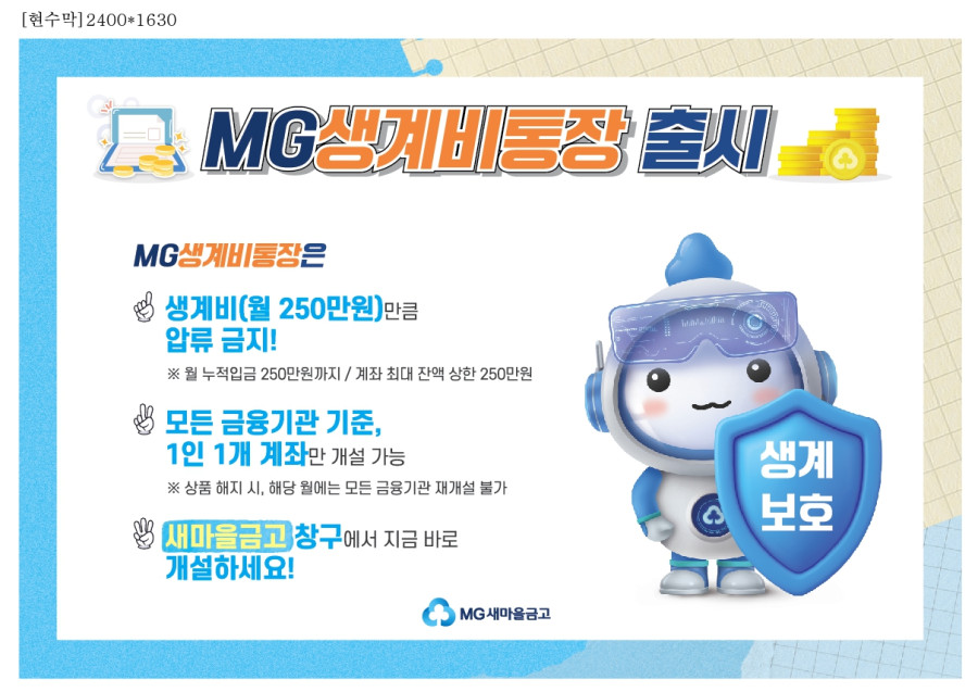 [성남중부새마을금고 본점]생계비통장 현수막
