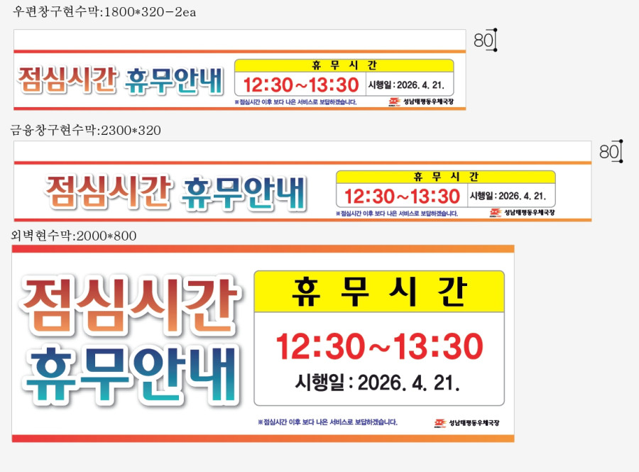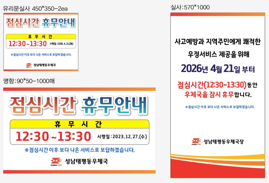 [성남태평동우체국] 점심시간 휴무