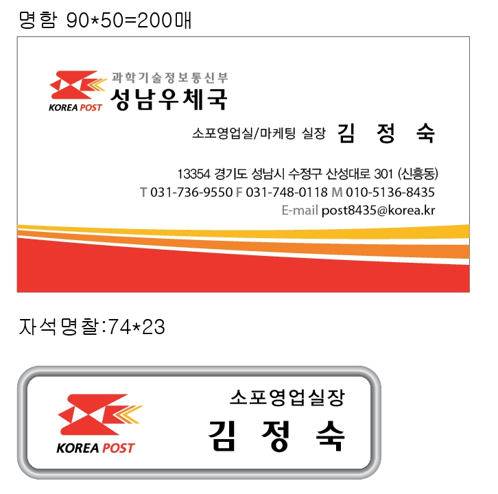 [성남우체국 소포실]명함 명찰