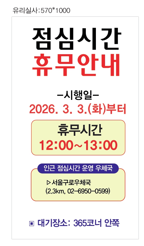 [서울오류동우체국]점심시간 휴무안내